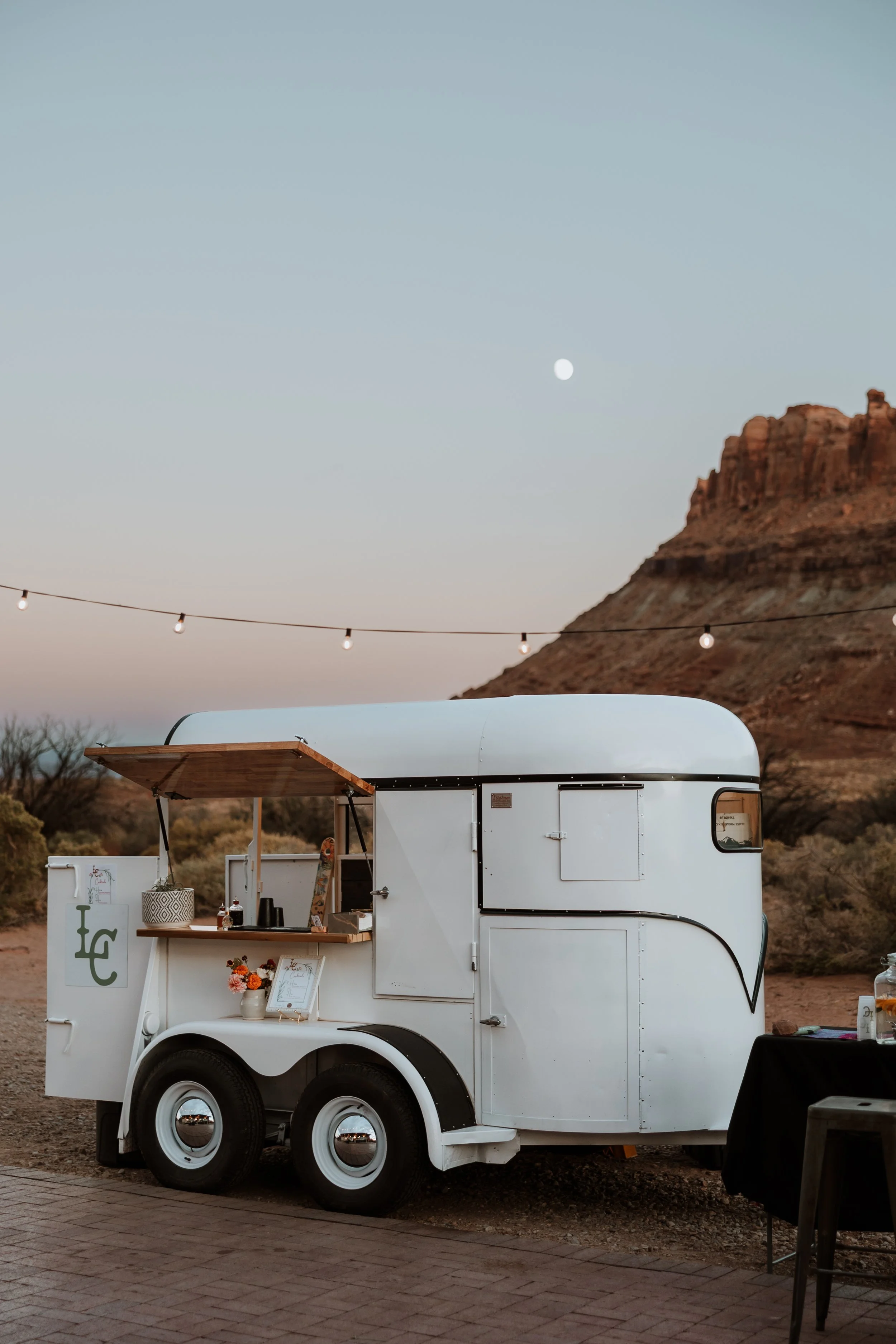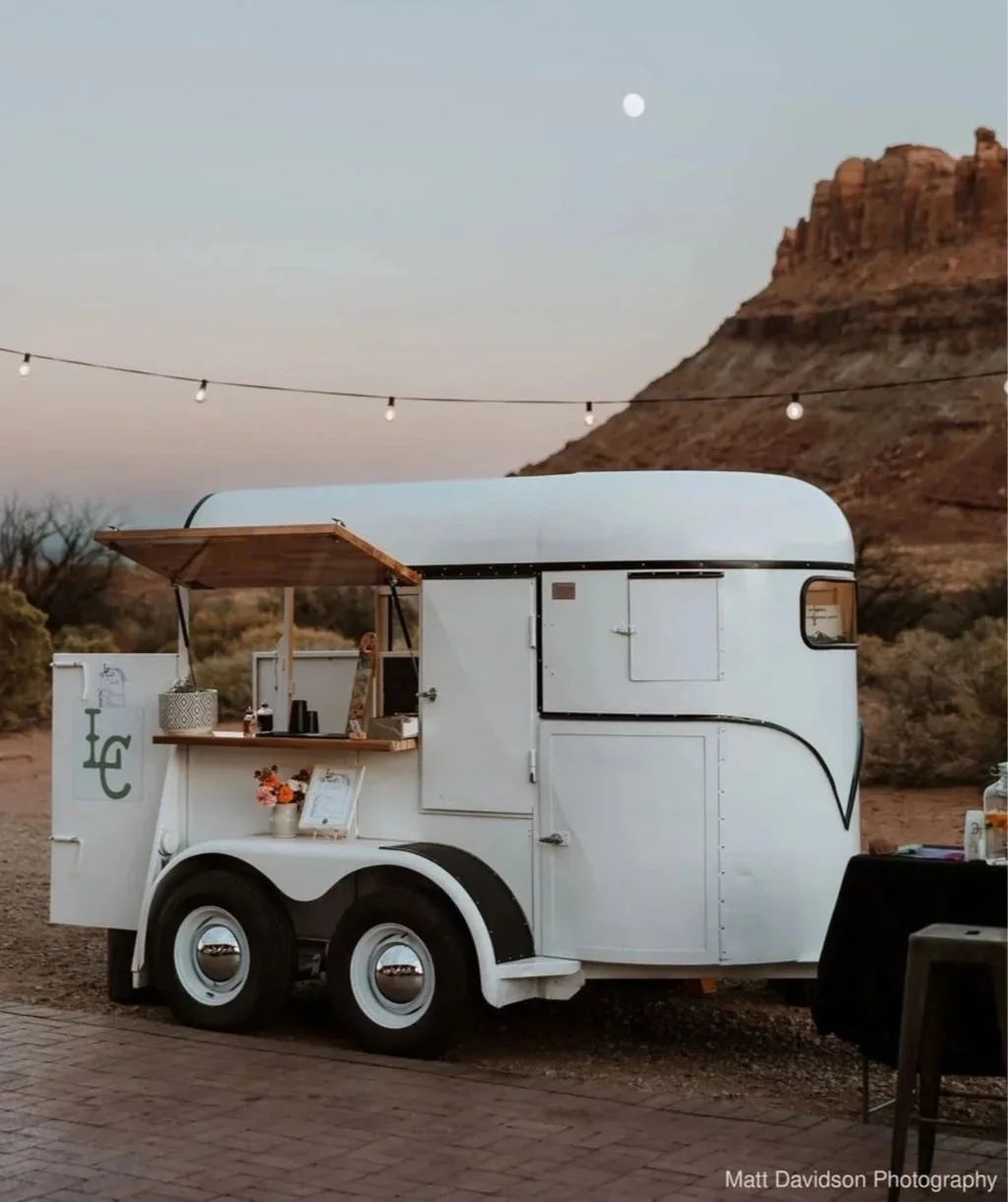 In 2025, we converted a 1970’s horse trailer into a functional mobile bar great for weddings or other events and celebrations. The design is intentionally neutral so you can decorate to fit any theme.